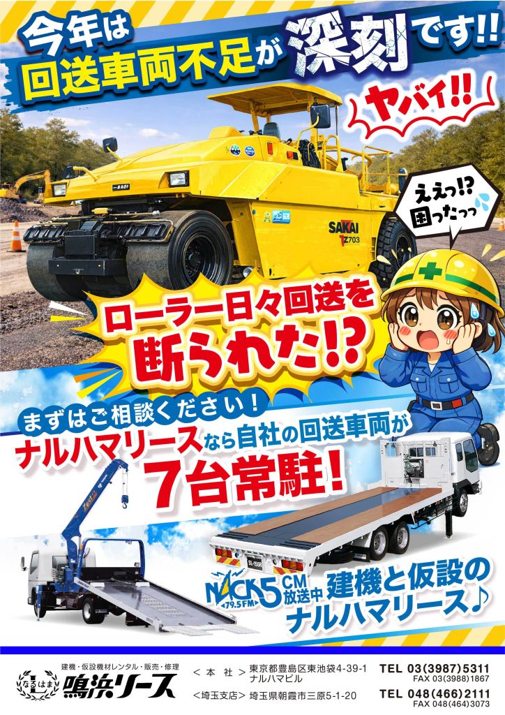 現場が止まってしまう前にぜひ一度《鳴浜リース》にご相談ください📞