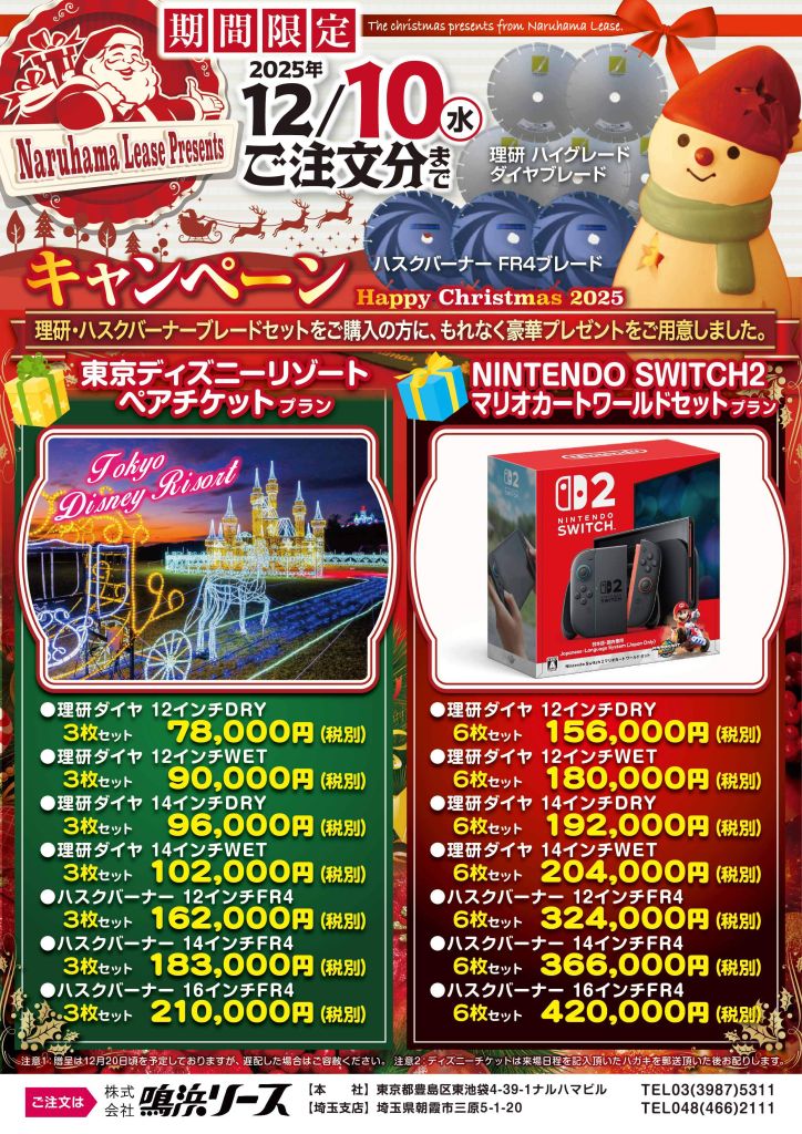 お知らせ 2025年クリスマスキャンペーン実施について 2025年11月4日 by naruhama 恒例のダイヤブレードのクリスマス販売キャンペーンを実施いたします。今年も素敵なプレゼントをご用意しておりますので、この機会にぜひご用命ください。