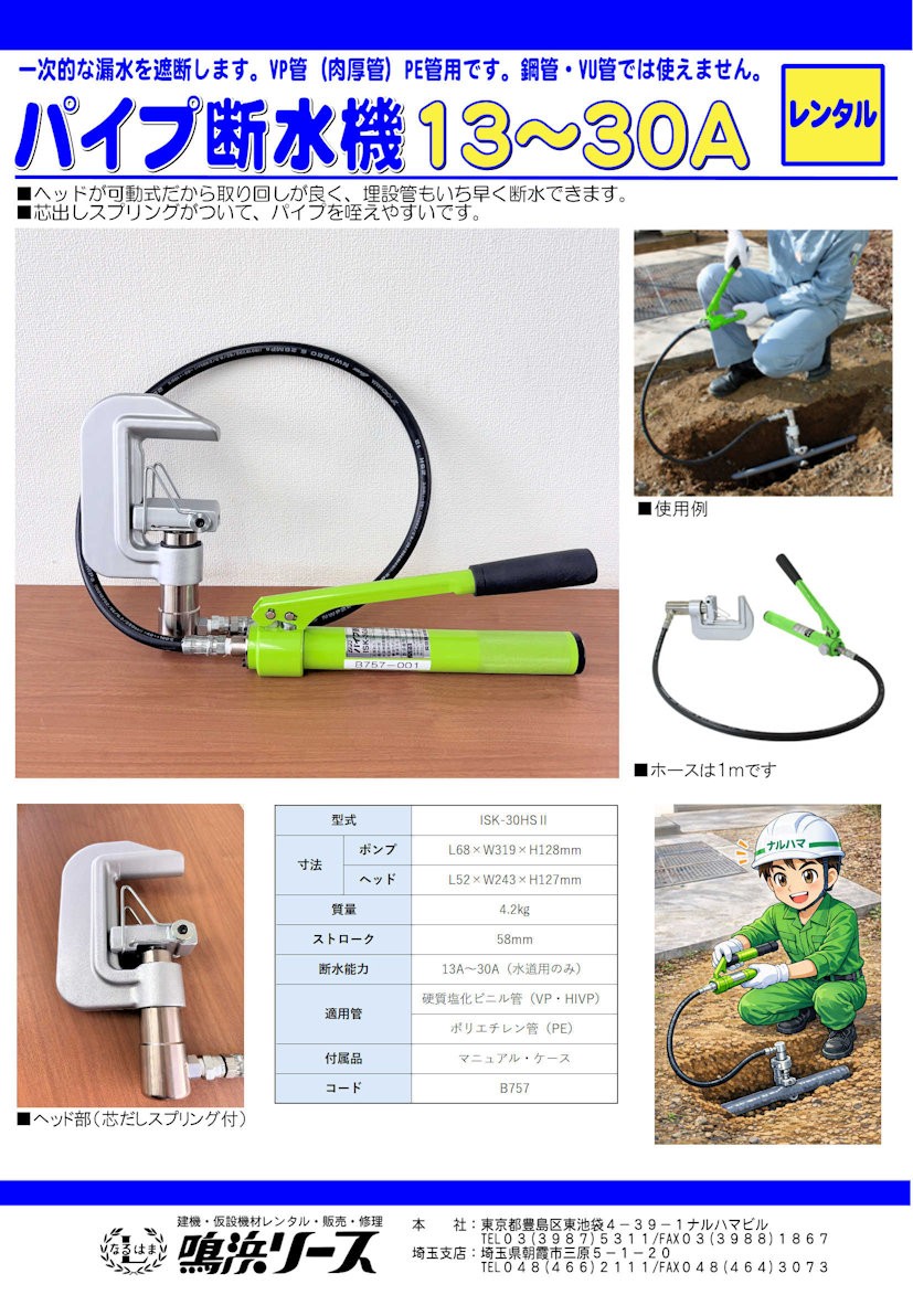 一次的な漏水を遮断します。VP菅(肉厚管)、PE管用です。鋼管やVU管では使用できません。